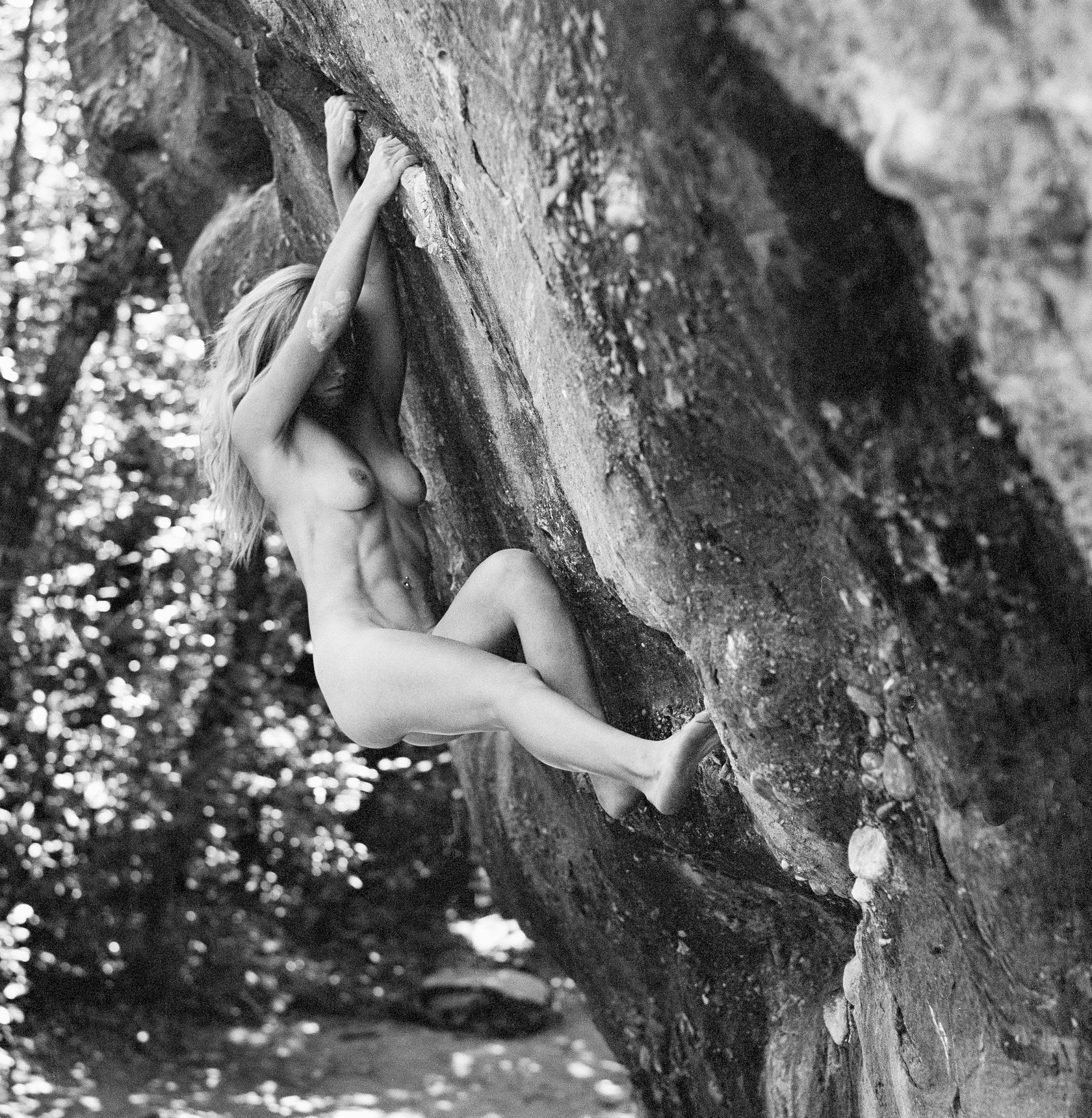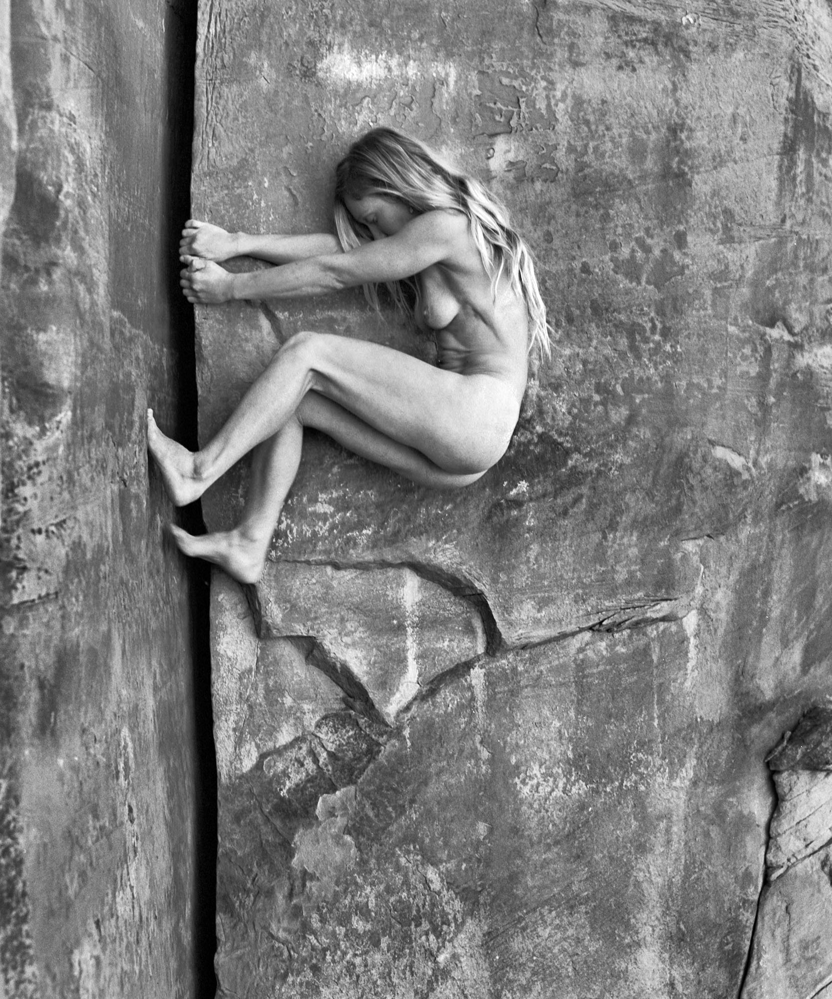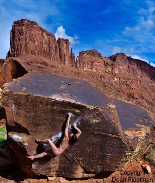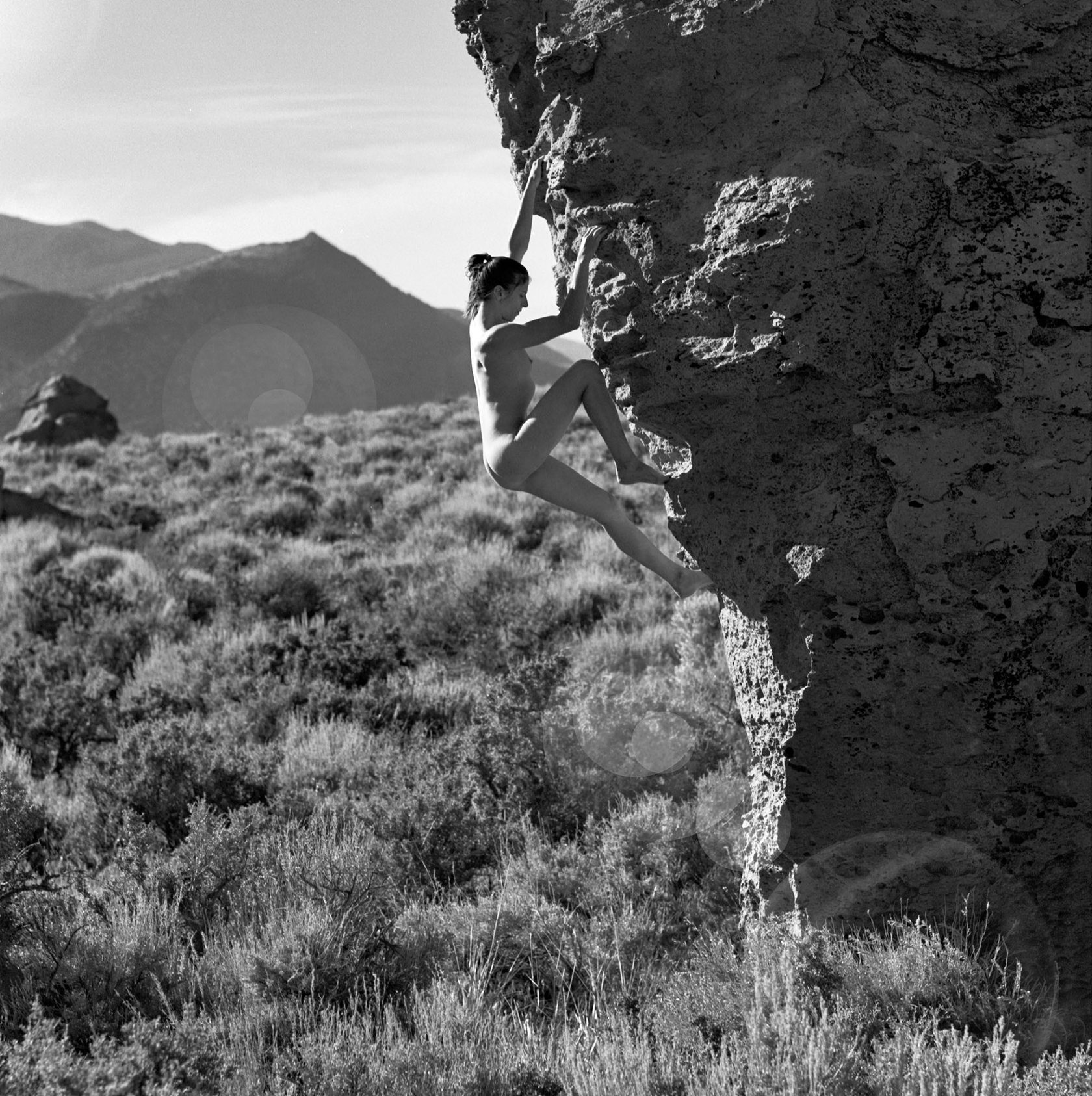 History I grew up in the San Fernando Valley, California, and began Climbing in 1971, at 15 years old. Each afternoon after school let out I would peddle my bike 20 miles round trip to climb at Stoney Point. On the weekends my journey took me past street vendors selling their wares. I was fascinated by the velvet paintings displayed on the chain link fences along the sidewalks. Mostly it was the semi-nude paintings of reclining women, their form duplicated over the mountain landscapes that always comprised the background. I longed to make just such an image, only mine would be of a woman climbing nude. Being 15 I felt like I knew a lot about climbing, a little about photography, and absolutely nothing about women. I was wrong about the first two and right about the third. But still those images were part of my teenage imagination. A fledgling vision. In 1999 I was 42 and living in Joshua Tree, California. I had reached a stage as an artist where the need to make original work was strong. I wanted to be open, to look into my heart and express the love inside of me. Climbing had become my canvass and the people my paint. Passion would become my brush. I had been making climbing photographs and nudes from the time I picked up the camera when I was 15. Combining the two seemed so ... simple. |
